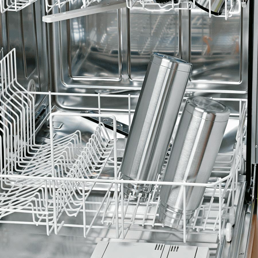 Der Automatikverschluss lässt sich per Knopfdruck sogar einhändig öffnen und schließen, beim Matetrinken unterwegs ist das wirklich super komfortabel. Zum Reinigen kann der Verschluss darüber hinaus in 2 Teile zerlegt werden, per Hand oder in dem Spüler wird sie so wieder überall schön sauber.